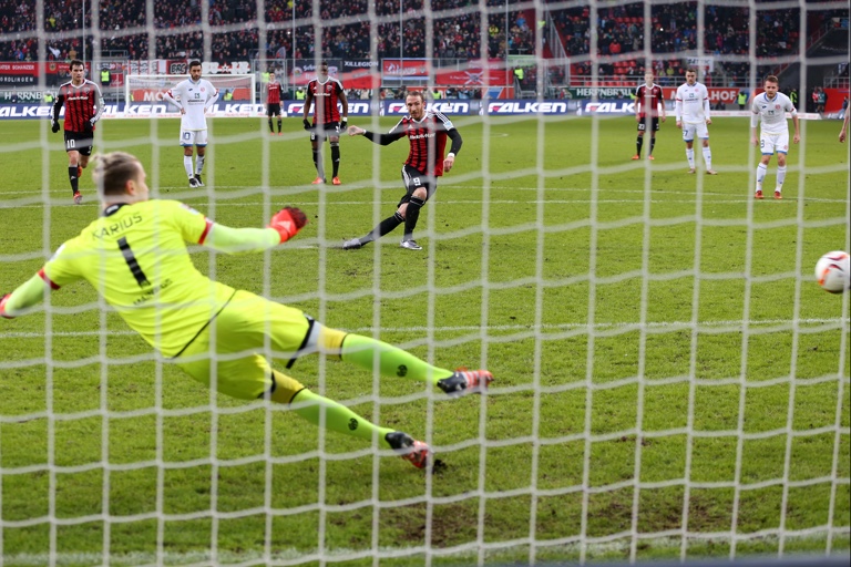 Hartmann war es dann auch, der für die einzigen beiden echten Torszenen in der ersten Hälfte verantwortlich zeichnete. In der 19. Minute ergab sich für ihn nach einem Eckball eine Riesenchance, doch das Leder landete an der Latte. In der 40. Minute sorgte er mit seinem vierten Saisontreffer für das goldene Tor, als er einen Elfmeter eiskalt ins linke unter Eck versenkte. Nach einer Hereingabe von rechts hatte Pascal Groß abgezogen und der Mainzer Danny Latza bekam den Ball an den Arm. Der Schiedsrichter entschied in dieser durchaus nicht unstrittigen Szene auf Strafstoß, Routinier Hartmann ließ sich nun nicht zwei Mal bitten.