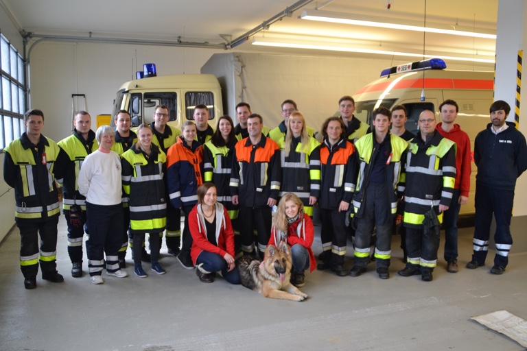 Nachdem gestern alle den theoretischen Teil bestanden hatten, stand heute die praktische Prüfung auf dem Programm. Vier Fallbeispiele mussten in Zweier-Teams bewältigt werden. Auf der Agenda standen jeweils ein internistischer Notfall, zwei Fälle von Reanimation beziehungsweise Frühdefibrillation sowie die Behandlung eines Trauma-Patienten. Nach der erfolgreich abgelegten Prüfung gab es ein gemeinsames Abschluss-Essen beim BRK.