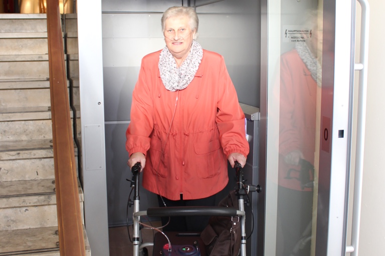Die Anregung, im Zuge der Sanierung des Hauses der Begegnung auch einen anderen Behindertenaufzug einzubauen, kam von Elisabeth Ruland, die beim Gehen auf ihren Rollator angewiesen ist. Immerhin ist das Haus der Begegnung ein viel besuchtes Kulturzentrum der Stadt – und für Behinderte war es bisher sehr schwierig, die Ausstellungen in der städtischen Galerie, die Stadtbücherei oder die Veranstaltungen im Theatersaal zu besuchen. „Zwar ist momentan noch der Aufzug vom Erdgeschoss in die oberen Etagen defekt, aber zumindest der Weg zur Musikschule und zur städtischen Galerie steht den Behinderten jetzt offen“, sagte heute eine Sprecherin der Stadtverwaltung.