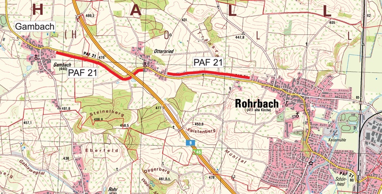 Die Gemeinde Rohrbach stellte den Antrag, an der PAF 21 von Rohrbach bis Gambach einen Geh- und Radweg zu bauen. Nachdem mit der Autobahndirektion Südbayern eine kostenneutrale Aufweitung des Brückenbauwerks erzielt werden konnte, kann mit dem Weg eine sichere und durchgängige Verbindung für Radfahrer und Fußgänger zwischen Rohrbach und dem Ortsteil Gambach geschaffen werden.