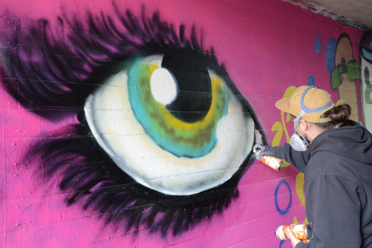 Im Rahmen der vom Jugendparlament unterstützten Aktion „Du hast die Dosen… wir die Mauern“ stellt die Kreisstadt Wände bei der Krankenhaus-Unterführung, der Niederscheyerer Fußgängerunterführung, an der „Hohenwarter Mauer“ sowie nun auch unterhalb der Umgehungsbrücke an der Hohenwarter Straße zur Verfügung. Ziel der Aktion ist es, durch die gezielte Bereitstellung von Graffiti-Flächen die legale Ausübung dieser Kunstform einerseits zu ermöglichen sowie andererseits Sachbeschädigung durch illegales Graffiti-Sprühen vorzubeugen.