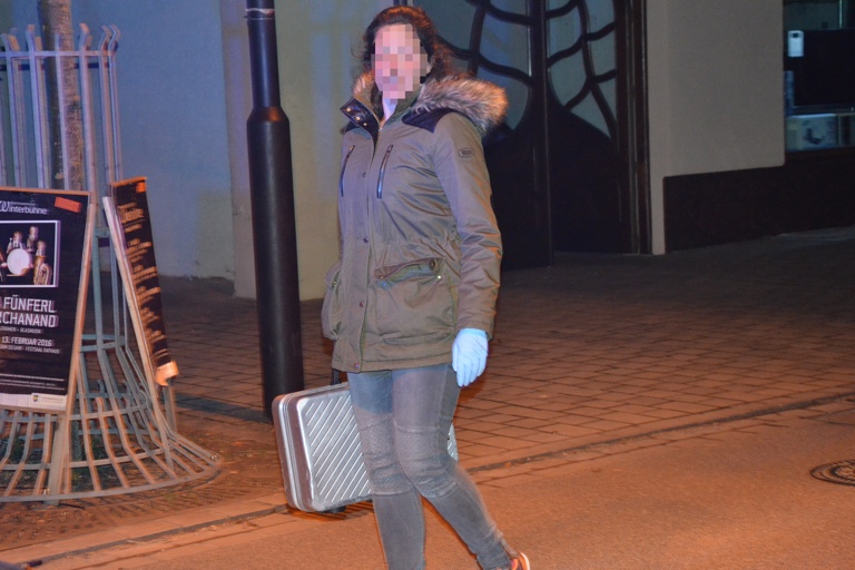 An diesem Abfalleimer stand der Koffer offenbar über Stunden.