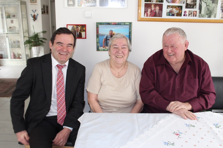 Am Tag ihrer Diamantenen Hochzeit freuten sich Rosmarie und Walter Thielsch über die Glückwünsche von Vize-Bürgermeister Albert Gürtner (links).