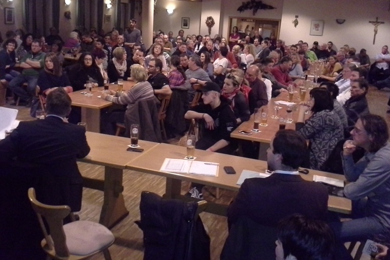 Im großen Saal beim Wirt in Lindach war kein Stuhl mehr frei. Für ein halbes Dutzend Leute war das aber kein Grund, wieder heim zu gehen. Sie blieben am Eingang stehen und hörten von dort aus zu, was ihnen die Kommunalpolitiker und Behördenvertreter zu sagen hatten. Vor allem die Frage nach der Anzahl der Flüchtlinge, die in Weichenried untergebracht werden sollen, wurde gestellt. Landrat Wolf sprach davon, dass maximal eines der beiden Häuser ausschließlich mit Einzelpersonen belegt werden soll. Etwa 20 Menschen könnten in einem Gebäude untergebracht werden – so auch die Schätzung der kritischen Anwohnerin Ramona Reitberger.