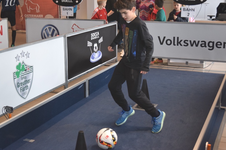 (ty) Wer sind die schnellsten Dribbler aus Pfaffenhofen und Umgebung und aus welchen Vereinen kommen sie? Diese Fragen werden am morgigen Nachmittag, 13. März, im VW-Autohaus Stiglmayr beantwortet, wenn ab 14 Uhr Nachwuchskicker verschiedenster Altersklassen beim „Socca-Duell“ in der Kreisstadt gegeneinander antreten. Auf einem eigens aufgebauten Parcours, gilt es die Hütchen so schnell wie möglich zu umkurven – mit dem Ball am Fuß natürlich. Die Zeiten werden vom Computer gemessen, sodass auch alles mit rechten Dingen zugeht. Zuschauer sind natürlich willkommen.