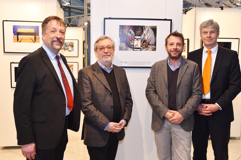 (ty) Die besten bayerischen Pressefotos, die im vergangenen Jahr veröffentlicht wurden, sind bis 10. April im Terminal 2 des Münchner Flughafens zu sehen. Wie in den vergangenen Jahren bietet die Ausstellung „Ereignisse brauchen Bilder“ des bayerischen Journalisten-Verbands (BJV) prämierte Aufnahmen aus dem Wettbewerb „Pressefoto Bayern“. Die Ausstellung zeigt ein breites Spektrum an Motiven aus den unterschiedlichsten Lebensbereichen. Seien es Bilder von Sportereignissen, Politik, Alltäglichem oder auch Dramatischem – gemeinsames Merkmal der gezeigten Fotos ist ihre große Originalität und Qualität. Eröffnet wurde die Ausstellung am Münchner Airport durch den BJV-Vorsitzenden Michael Busch (von links), den Leiter der Jury, Hans-Eberhard Hess, den Sieger des Wettbewerbs, Florian Bachmeier, und den Leiter der Unternehmenskommunikation der Flughafen München GmbH, Hans-Joachim Bues.