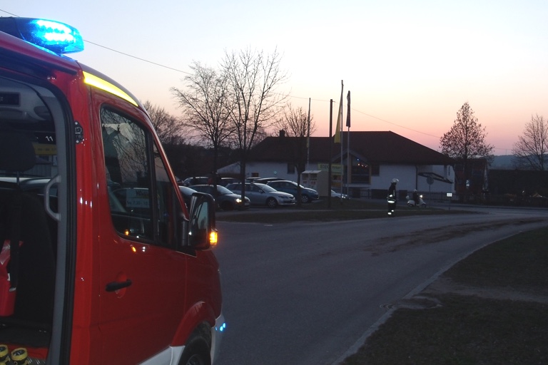 Die Scheyerner Floriansjünger mussten heute Abend die Straße von Erde befreien – 18 Mann waren angerückt