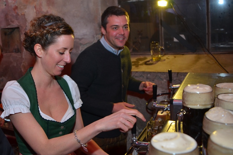 Bürgermeister Thomas Herker und Stadträtin Julia Spitzenberger beim Ausschenken.