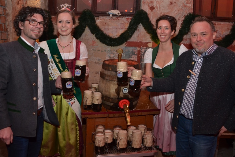 So hatten sich am Oberen Hauptplatz auch so ziemlich alle versammelt, die nicht nur in der SPD Rang und Namen haben. Nachdem Stadträtin und Festwirtin Julia Spitzberger kurz vor 19 Uhr das erste Fass „Demokrator“, das Starkbier ohne bitteren Nachgeschmack, mit drei Schlägen angezapft hatte und auch ihre Majestät, die Hallertauer Hopfenkönigin Anna Roßmeier, die Gäste begrüßt hatte, war die Feier eröffnet.