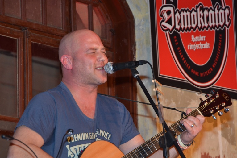 Gegen 20.30 Uhr betrat der bereits vorab groß angekündigte Sänger und Gitarrist Michi Dietmayr die Bühne, um auf musikalische und humorige Art zu erklären, was passiert, wenn er kein Bier mehr hat, oder um der Frage nachzugehen, warum Frauen nicht nur mit dem Hirn denken würden. Die Gäste wirkten bestens unterhalten: Erst nach mehreren demokratisch gewählten Zugaben, wie es Dietmayr formulierte, ließen sie den Künstler von der Bühne.