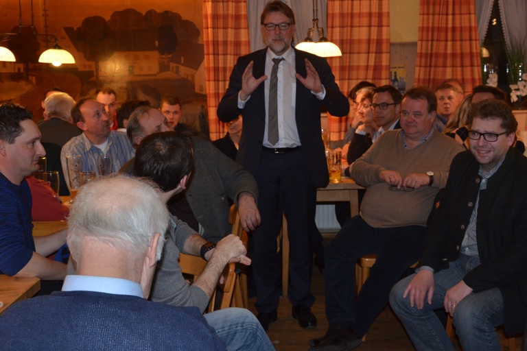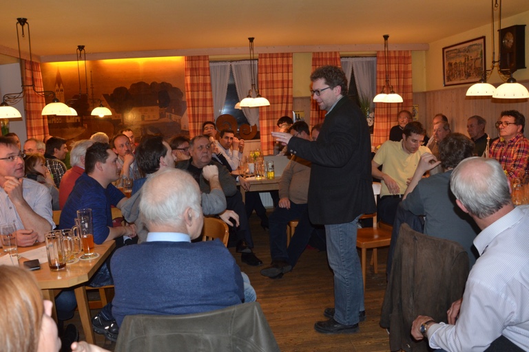 Die Pfaffenhofener CSU um ihren Vorsitzenden Florian Schranz (stehend) hatte zum Stammtisch geladen, die Bude war voll.