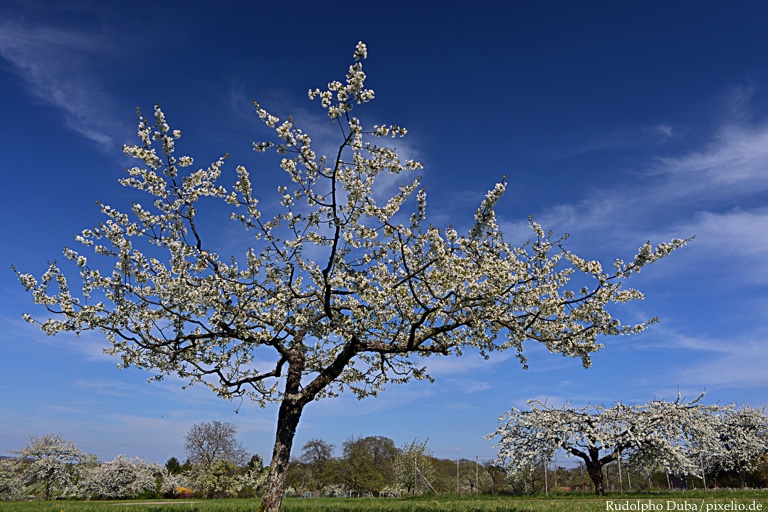 (ty) Weiße Frühlingsboten: In der ersten Aprilwoche erwarten die Agrarmeteorologen des Deutschen Wetterdienstes (DWD) den Beginn der Süßkirschenblüte an der Bergstraße und in der Vorderpfalz. Wenige Tage später folgen das Rhein-Main-Gebiet und der Niederrhein.