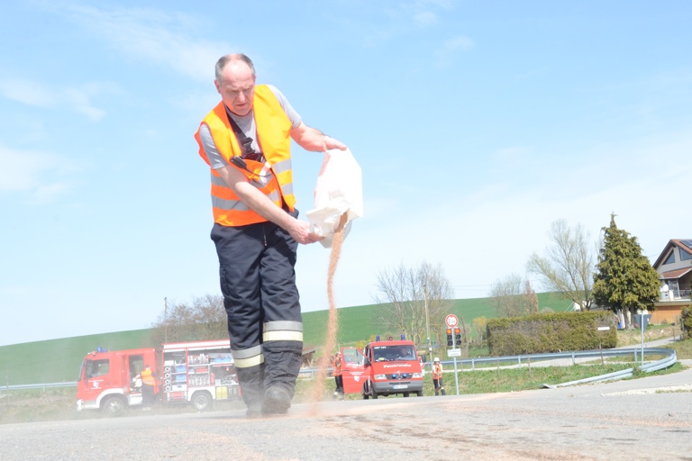 Wer für das Malheur verantwortlich zeichnet, sei bislang nicht bekannt, sagte ein Polizeisprecher auf Anfrage. Sollte der Fahrer ausfindig gemacht werden, wird allerdings zu klären sein, ob er den Feuerwehr-Einsatz zu bezahlen hat. Die Einsatzkräfte haben jedenfalls bei den sommerlichen Temperaturen ganz schön geschwitzt – und das Hantieren mit Ölbindemittel und Besen ist auch eine staubige Angelegenheit.