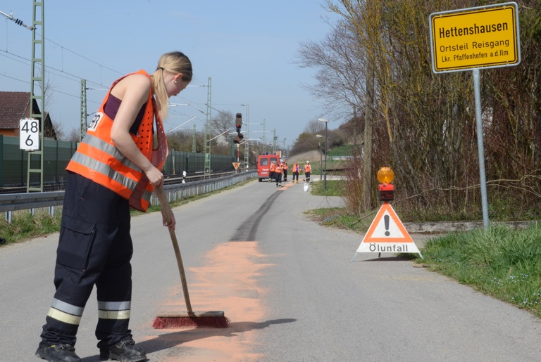 (zel) Wegen einer gut einen Kilometer langen und teils massiven Ölspur musste heute Nachmittag die Feuerwehr von Hettenshausen ausrücken. Die Floriansjünger waren von der Pfaffenhofener Polizei verständigt worden. Insgesamt 14 Leute waren gut 1,5 Stunden im Einsatz, um die Ölspur zu beseitigen – die zog sich vom Umspannwerk auf der Gemeindestraße neben der Bahnlinie entlang, durch die Unterführung und schließlich auf der B13 in Richtung Pfaffenhofen weiter bis kurz vor dem Mercedes-Autohaus. Dort kehrte der Verursacher der Spur zufolge um und die Spur verliert sich.