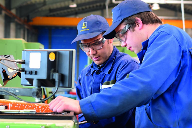 In der Bauer-Lehrwerkstatt bekommen aktuell insgesamt neun junge Männer aus Syrien, Afghanistan, Nigeria und Eritrea an sechs Terminen zweimal die Woche einen Einblick in die Metallbe- und -verarbeitung. „An den anderen Wochentagen besuchen die Asylbewerber spezielle Integrationsklassen beziehungsweise Deutschkurse an der Volkshochschule in Schrobenhausen. Je nachdem, wo sie ihren derzeitigen Wohnsitz haben und wie lange sie schon in Deutschland sind“, erklärt Gerhard Schmid, Ausbilder bei Bauer. Ausreichende Deutschkenntnisse, so Schmid, seien für eine gelingende Zusammenarbeit ungemein wichtig. Hinzu kämen auch noch die vielen Fachbegriffe, die alle Beschäftigten lernen müssten.