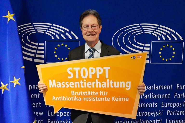 Er verweist in diesem Zusammenhang auch auf eine Studie der Stiftung Tierärztliche Hochschule Hannover und der Uni Leipzig, wonach Masthähnchen in Deutschland an zehn ihrer 39 Lebenstage Antibiotika verabreicht bekämen. „Dadurch ist die Massentierhaltung zu einer der wesentlichen Brutstätten der so genannten Krankenhauskeime (MRSA) geworden“, erklärt Buchner und betont: „Durch wiederholten, breiten und falsch indizierten Einsatz von Antibiotika in der Massentierhaltung (jedoch auch in der Humanmedizin) werden resistente Bakterien geradezu gezüchtet“. Bei einer Infektion mit diesen Erregern wirke dann kein Antibiotikum mehr.