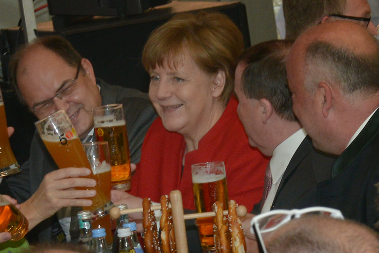 Die zitierfreudige Kanzlerin gab denn auch noch einen Satz von Benjamin Franklin zum Besten: „Bier ist der überzeugendste Beweis dafür, dass Gott die Menschen liebt und glücklich sehen will.“ Und Martin Luther durfte auch nicht fehlen, der einmal gemein hat, wer kein Bier habe, der habe nichts zu trinken.