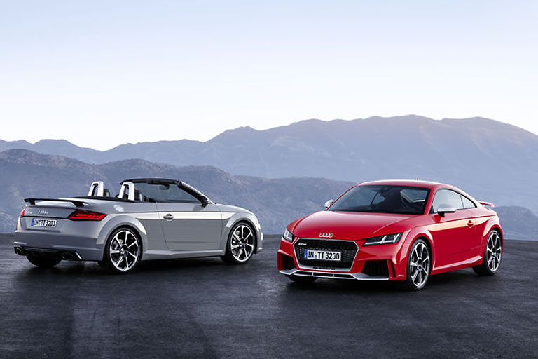 Das TT RS Coupé beschleunigt in 3,7 Sekunden von 0 auf 100 km/h, der Roadster in 3,9 Sekunden. Das entspricht dem Niveau eines Supersportwagens. Die Höchstgeschwindigkeit regelt Audi bei 250 km/h ab, auf Wunsch erst bei 280 km/h.