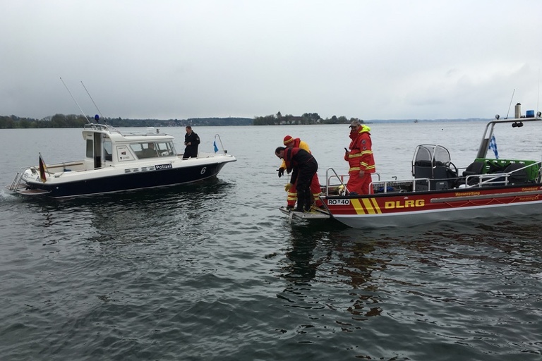 Und bereits nach kurzer Zeit konnte der Motor mit dem Sonargerät in 20 Meter Wassertiefe östlich der Herreninsel geortet werden. Der Rest war Routine: Ein Taucher untersuchte den gesunkenen Motor und schlug ein Bergetau an. Mit diesem wurde der Außenborder an Deck eines Rettungsboots gehievt. Die sicherheitshalber mitgeführten Ölbindemittel brauchten nicht eingesetzt werden, da bei der Bergung keine Betriebsstoffe im See festgestellt wurden.