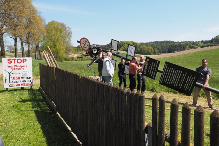 Mit einem besonderen Symbol protestiert die Dorfgemeinschaft gegen den geplanten Windpark
