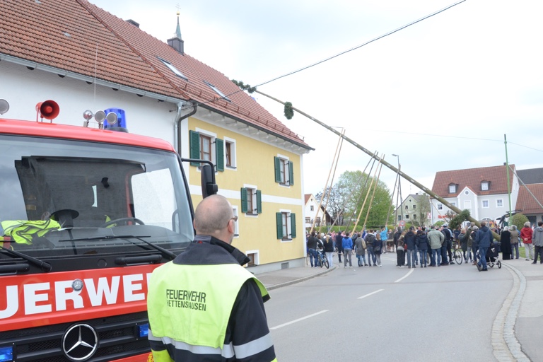 Viele Helfer packten am frühen Nachmittag beim kraftraubenden Maibaum-Aufstellen an. Die Fußballer vom FC Hettenshausen hatten ihre eigentlich für heute terminierte Kreisklassen-Partie beim SV Manching II eigens um einen Tag vorverlegt, um mithelfen zu können. Beim Tabellen-Fünften setzte es übrigens eine 0:6-Schlappe für den FCH, der auf Platz zehn unter den 14 Teams rangiert, mit dem Abstieg aber nichts mehr zu tun haben sollte.