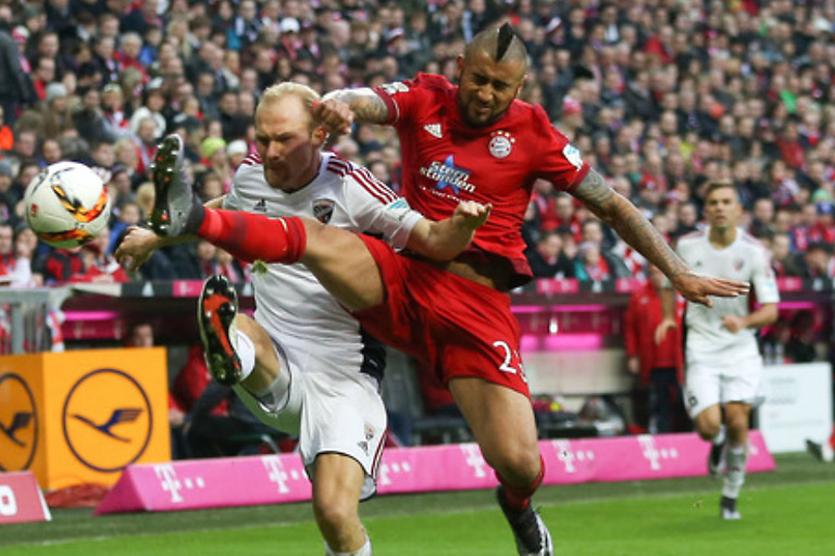 Im Hinspiel am 12. Dezember 2015 unterlagen die Schanzer dem deutschen Rekordmeister nach einem großen Kampf mit 0:2. Der FCI trat derart mutig in der Allianz Arena auf, sodass selbst FCB-Trainer Pep Guardiola unmittelbar nach der Partie ins Schwärmen geriet: „Wir haben heute gegen die beste Mannschaft gespielt, die wir in dieser Saison getroffen haben. Wenn im Fußball jede Mannschaft so spielen würde wie Ingolstadt heute, wäre Fußball der beste Sport der Welt." In der Tat traten Marvin Matip, Pascal Groß und Co. äußerst selbstbewusst gegen die FCB-Stars auf und konnten sich sogar um ein Haar die Führung erspielen.