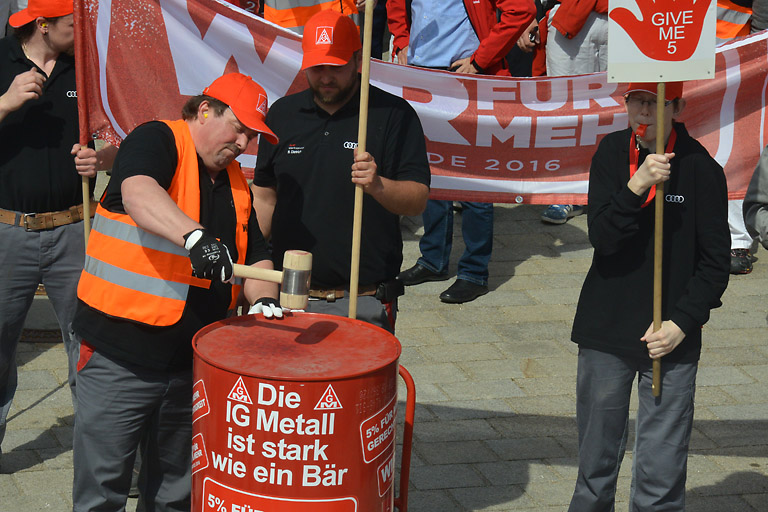 „Wir wollen endlich das, was uns auch zusteht. Ich hoffe, dass auch die Damen und Herren der Unternehmensleitung von Audi diese Botschaft verstehen. Und endlich mal ihren guten Freunden beim Arbeitgeberverband Beine machen.“
