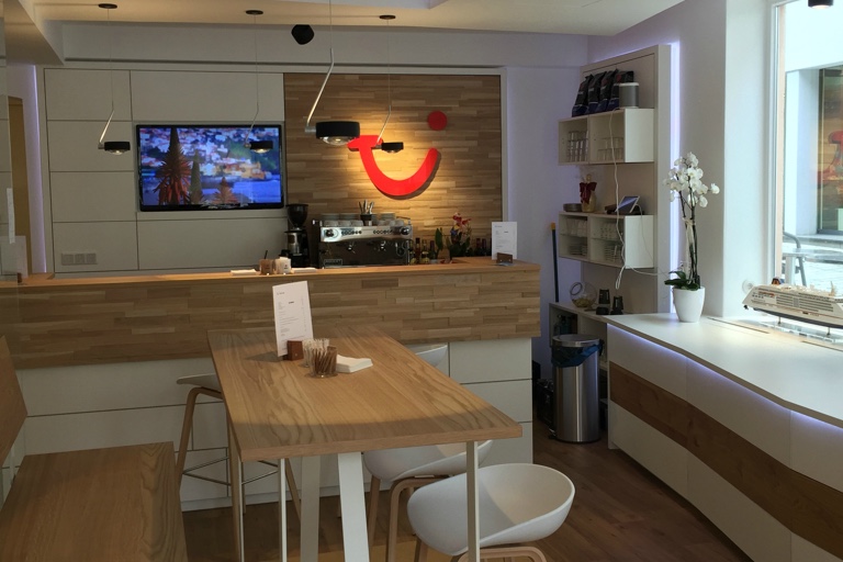 Direkt neben dem Rathaus empfängt der Geschäftsführer des „TUI ReiseCenter“, Günther Kern, seine Kunden in neuen Räumlichkeiten. Das modern eingerichtete Ladengeschäft wartet neben den üblichen Dienstleistungen eines Reisebüros mit einer Besonderheit auf: Sonst nur aus Großstädten bekannt, werden hier auch Kaffee und kleine Snacks angeboten. Das eigens eingerichtete Café empfängt seine Gäste nicht nur innen, sondern bietet auch einige sonnige Plätze vor der Tür. Mit diesem Konzept verbindet Kern die Ansprüche der Kunden an ein modernes Reisebüro mit dem Charme einer kleinen Cafébar.
