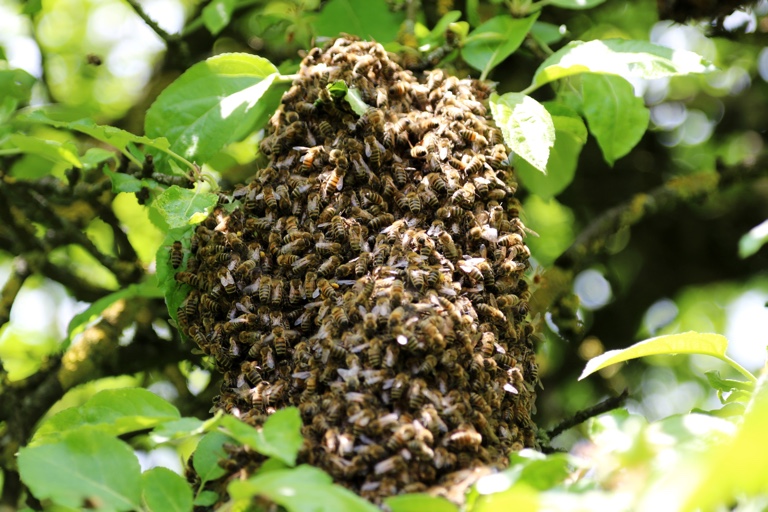 Bei Scheyern hatte sich ein Bienenschwarm auf einem Apfelbaum niedergelassen – Unsere Aktion läuft: Schicken Sie uns Ihre Frühlings-Impressionen!