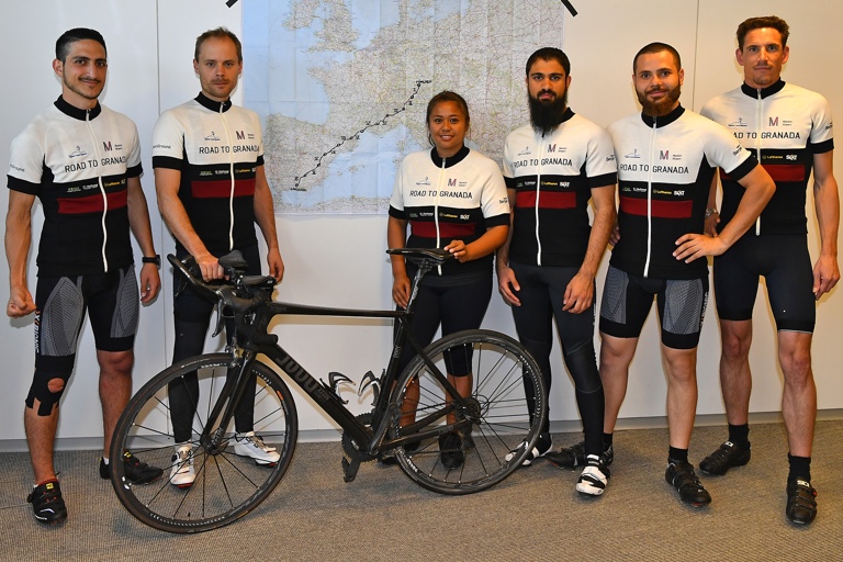 (ty) Eine Mammut-Tour von rund 2300 Kilometern Länge – durch sechs europäische Länder und über zwei Hochgebirge, alles mit reiner Muskelkraft. So lautet der Plan eines außergewöhnlichen Rennrad-Teams, das Mitarbeiter der Flughafen München GmbH (FMG) aus der Taufe gehoben haben. Am Montag, 30. Mai, startet das sechsköpfige Team am Münchner Marienplatz – Ziel ist Granada im Süden Spaniens. Das Team besteht aus einer Mitarbeiterin und zwei Mitarbeitern des Airports sowie aus drei Syrern, die wegen des Kriegs in ihrer Heimat nach Deutschland geflohen sind.