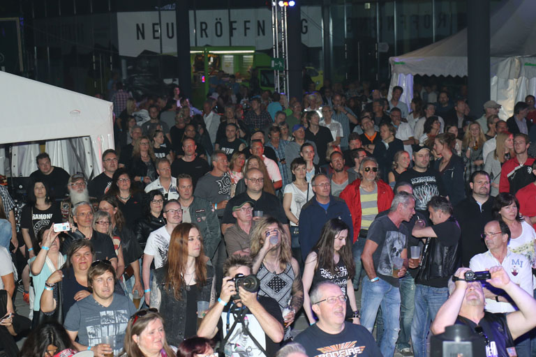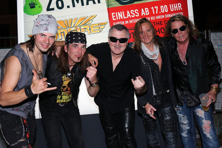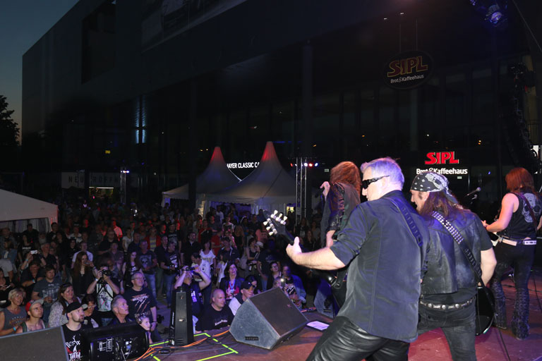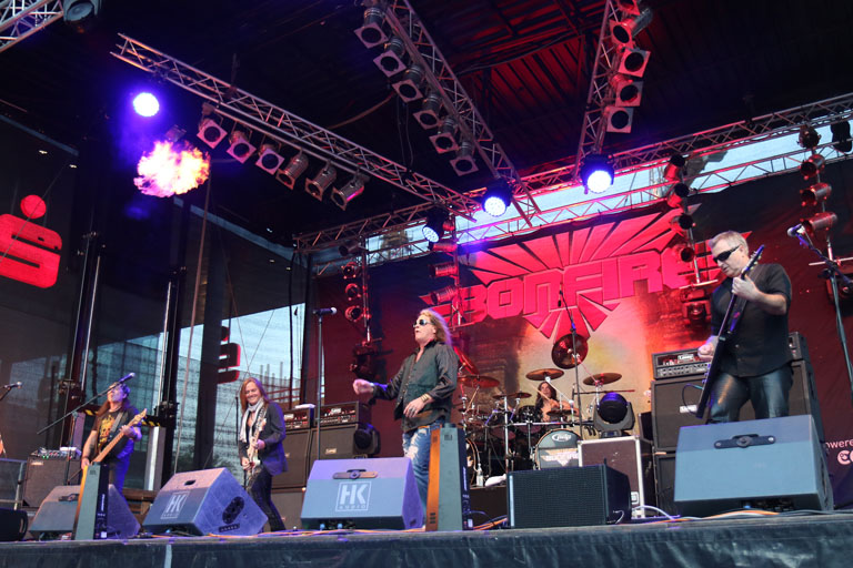(ty) Gut besucht war gestern das Konzert der weltbekannten Ingolstädter Rockformation Bonfire vor dem Oldtimerhotel in Ingolstadt. Nachdem die Bands Voltraid, Snakebite und Rebellious Spirit vorgeheizt hatten, kamen die Schanzer Hardrocker auf die Bühne, um die etwa 600 Fans mit ihrem Hard Rock nicht nur der 80er Jahre zu begeistern. Es war das 1. Rock-Festival vor dem Oldtimerhotel, das am gestrigen Samstag zu einer klanvollen Open-Air-Party geriet.