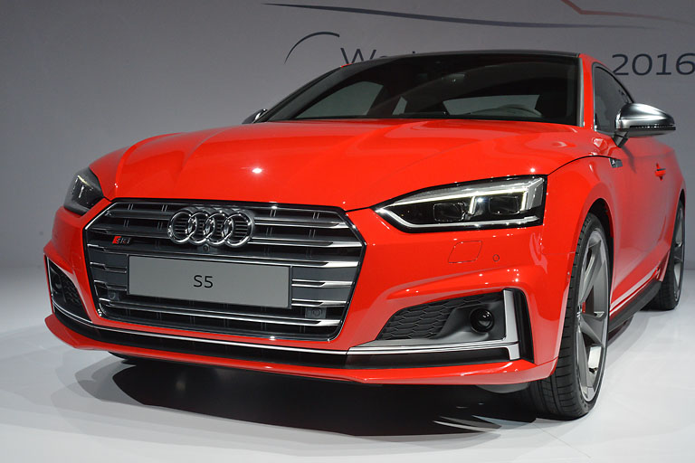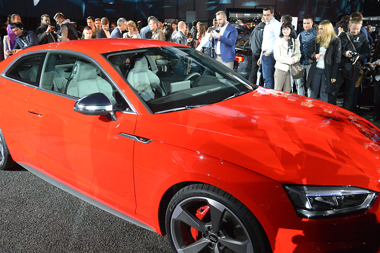 (ty) In aller Regel erblicken neue Autos ja auf den großen Automobilmessen in Frankfurt, Paris, Detroit oder Genf das Licht der Welt. Beim neuen Audi A5 Coupé war das anders. Den präsentierte der Ingolstädter Premiumhersteller heute Abend in einer Weltpremiere auf der Audi Piazza in Ingolstadt, am Stammsitz der vier Ringe, wo er auch gebaut wird. Rund 500 Journalisten und Ehrengäste aus aller Welt waren dabei, als der neue A5 nach einer imposanten Zeitreise in die Geschichte des Audi-Coupés endlich nach ein paar schnittigen Runden auf der Piazza stand. Und es war gleich eine Doppelpremiere. Denn zu dem A5 Coupé gesellte sich auch gleich noch der S5 Coupé.