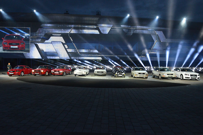 Seit Tagen hatte eine faszinierende Late-Light Show, die am Ende rund 16 000 Menschen besucht haben, diesen Abend sozusagen vorbereitet, Und die war selbstredend auch heute wieder zu sehen. Der Star des Abends neben all den historischen Modellen aus der Audi-Geschichte, die für den heutigen Abend das Museum verlassen durften, war natürlich der neue A5.