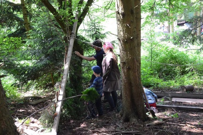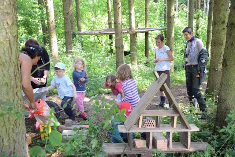 Für Buben und Mädchen ist zum Beispiel Basteln mit Naturmaterialien angesagt, auch Baumstämme werden bemalt. An Naturschutz-Stationen kann man Nistkästen für Meisen und Baumläufer anfertigen, die dann auch aufgehängt werden. Zwei Künstler arbeiten mit Holz, wobei einer spektakulär mit der Motorsäge schnitzt. Der Forstbetrieb baut indes Ruhebänke. Vom Kunstkreis „Spektrum“ aus Geisenfeld sind mehrere Mitglieder vertreten, die ihre Bilder präsentieren oder vor Ort malen. Der Kindergarten „Bunte Welt“ stellt Kunstwerke aus Naturmaterialien aus, der Waldkindergarten webt einen Teppich oder Spinnennetz zwischen den Bäumen. Der Rundweg soll den Besuchern die Gelegenheit bieten, den Wald auch einmal aus künstlerischer Sicht zu betrachten – und die Kinder sollen dazu animiert werden, selbst mitzugestalten.