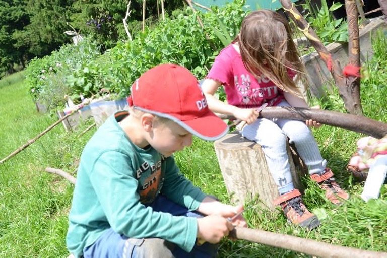 Ein Besuch im Waldkindergarten, wo heute im Rahmen der Woche des Waldes geschnitzt wurde – Mit großer Bilder-Galerie – Am Sonntagnachmittag gibt es bei Geisenfeld viel zu erleben