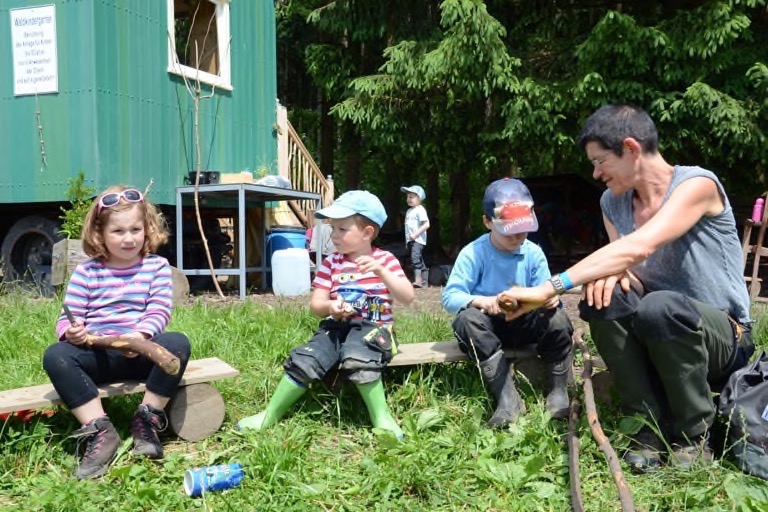 (ty) Wer auch nur kurz im Waldkindergarten von Ilmmünster vorbeischaut, der kann sich schnell davon überzeugen, dass hier immer was los ist. Da wird gebastelt und gebaut, gemalt, gespielt und gelernt. Heute wurde zudem geschnitzt und gefilzt. Im Rahmen der „Woche des Waldes“, die heuer vom zuständigen bayerischen Ministerium unter das Motto „Kunst im Wald“ gestellt wurde, war nämlich Annette Walter zu Gast bei den Buben und Mädchen. Sie ist Försterin und Bildungsbeauftragte des Pfaffenhofener Amts für Ernährung, Landwirtschaft und Forsten (AELF) und begleitete eine Aktion zum kreativen Gestalten.