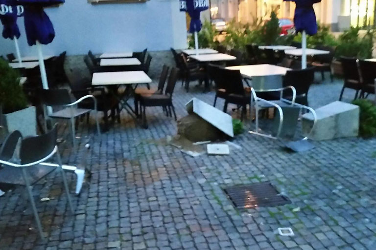 (ty) So hat er sich die Fußball-Europameisterschaft und sein Public-Viewing ganz sich nicht vorgestellt: Claus Häring, Wirt vom Ingolstädter Lokal "Mohrenkopf", erlebte gestern ein Auftaktspiel der deutschen Nationalmannschaft von der besonderen Art. Denn so viele Schrammen wie er trug an diesem Tag wohl keiner der Fußballer davon. Und sein Lokal ist im Außenbereich auch noch einigermaßen ramponiert.