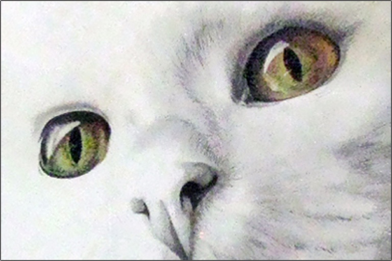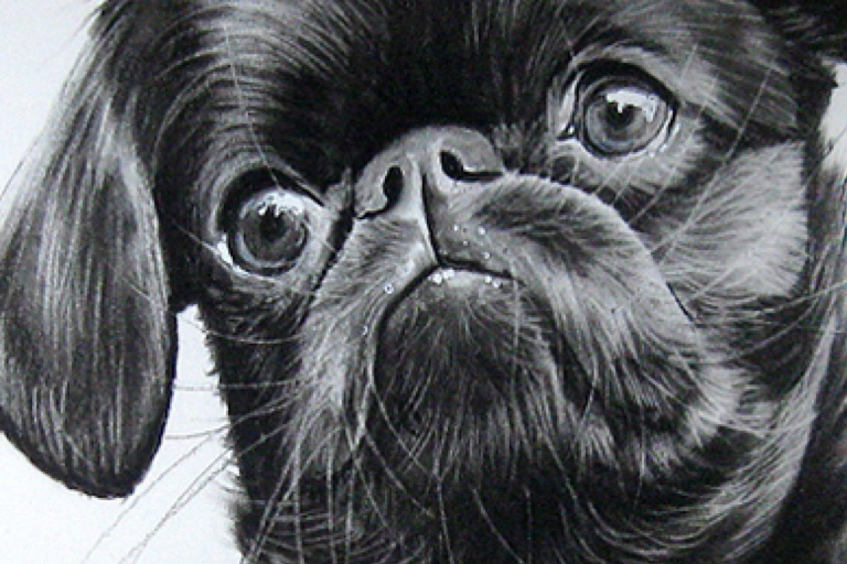 Allerdings muss man schon zwei Mal hinsehen, um zu erkennen, dass es sich bei den Werken von Andrea Brunner nicht um Fotos handelt. Doch genau dieses Ineinanderfließen aus Zeichnung und Foto macht ihre Arbeiten ebenso so charmant wie interessant. Die Augen der Vierbeiner: stets hellwach, verspielt, neugierig, verträumt, verschmitzt oder auch mal drohend: Keinen Schritt näher jetzt!