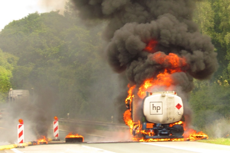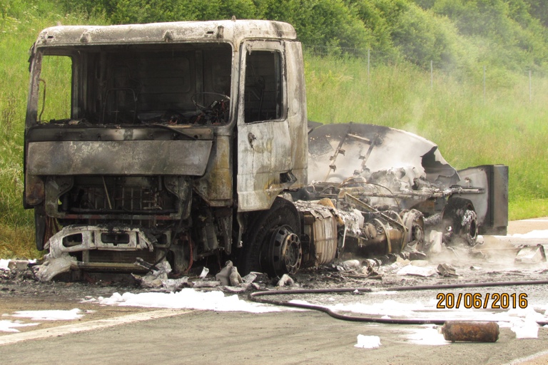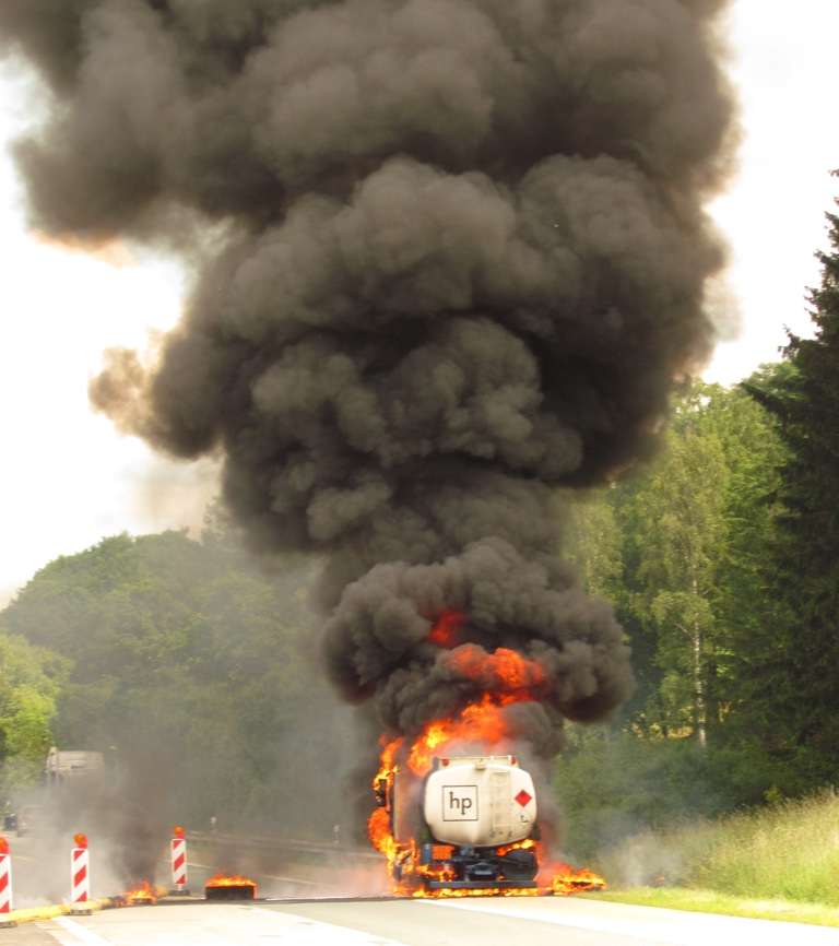 Bei dem Lkw handelte es sich nach Angaben der Autobahnpolizei um einen Tanklastzug, der gottlob nur noch etwa 500 Liter Heizöl an Bord hatte. Im Treibstoff-Tank des Lkw selbst befanden sich zudem noch zirka 120 Liter Diesel. Der Lkw samt Ladung brannte total aus. Mehrere Feuerwehren aus der Umgebung rückten an und löschten den Brand. Der Schaden an dem total zerstörten Laster sowie an der Fahrbahn wird nach ersten Einschätzungen auf etwa 60 000 Euro beziffert. Das Erdreich neben der Fahrbahn musste oberflächlich abgetragen werden.