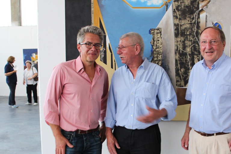 Bei der Ausstellungseröffnung: Kulturreferent und Kunstverein-Chef Steffen Kopetzky (von links), Künstler Herbert Klee und der frühere Kulturreferent Klaus Herber.