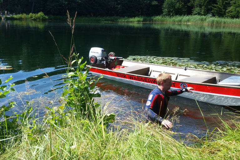 Die Wasserwachten aus Geisenfeld und Manching retteten heute Nachmittag das Kind im Feilenmoos