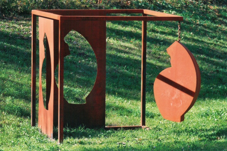 Das Werk von Tanja Röder aus Wolnzach („Natur – Klang – Raum“) ist ungefähr 2,50 Meter breit, tief und hoch und entstand bereits im Jahr 2010, wie sie im Gespräch mit unserer Zeitung berichtet. Derzeit ist das Kunstwerk in Österreich ausgestellt. Die Jury erklärt zu der Metall-Installation: „Es wird ein ganz eigener begehbarer Raum geschaffen, die Besucher können sich die Skulptur erschließen. Durch die Bespielbarkeit der Plastik wird eine Verknüpfung mit allen Sinnen geschaffen. Überzeugend ist auch das abstrakte Formenspiel, das Spiel zwischen Innen und Außen, Negativ und Positiv.“