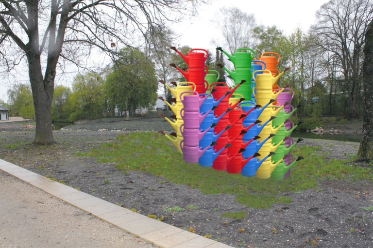 Von Seiten der Jury wurde zu der Gießkannen-Kunst erklärt: „Bei der Arbeit wird konsequent der temporäre Ansatz der Kunst verfolgt und einfache Materialien mit dem Bezug zum Thema Gartenschau verwendet. Die Wirkung wird über Masse und Farbe erzielt. Neben der ,poppigen’ Wirkung wird die Reflexion des Themas Wasserverbrauch aufgegriffen und konsequent umgesetzt. Der Ansatz der ,Gartenschau zum Anfassen’ wird dadurch sehr gut aufgegriffen.“
