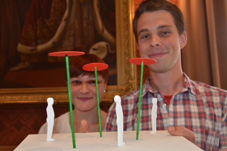 Sabine Ackstaller und Moritz Schweikl aus Hüll nennen ihr überdimensionales Werk schlicht „Blumen“. Diese Blumen werden allerdings um die drei Meter hoch werden, ein bisschen wie Schirme aussehen und einen Teller-Durchmesser von jeweils zirka einem Meter aufweisen. Das Künstler-Duo hatte ein kleines Modell seiner Idee eingereicht. Die Jury war offensichtlich angetan. „Die Arbeit besticht durch ihre reduzierte und einfache Form“, hieß es dazu. „Kleines wird in Großes verwandelt und abstrahiert dargestellt beziehungsweise auf seine essentiellen Formen reduziert. In blühendem unkontrollierten Wachstums des Freizeitparks entsteht so eine Form von Monumentalität.“