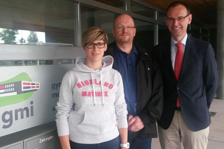 Polizeikommissarin Isabelle Krach, Polizeihauptmeister Hartmut Brach (Mitte) und der Leiter des Gymnasiums Markt Indersdorf, Thomas Höhenleitner.