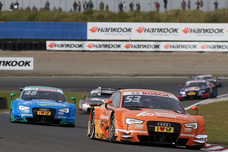 Timo Scheider verpasste im AUTO BILD MOTORSPORT Audi RS 5 DTM des Audi Sport Team Phoenix nur knapp einen Punkt. Der zweimalige DTM-Champion arbeitete sich mit einer Aufholjagd vom 18. Startplatz auf Rang elf nach vorn. Sein Teamkollege Mike Rockenfeller fuhr von Startplatz 17 auf Position 14. Miguel Molina (Teufel Audi RS 5 DTM) und Norisring-Sieger Nico Müller (Playboy Audi RS 5 DTM) beendeten das Samstagsrennen auf den Positionen 18 und 20.