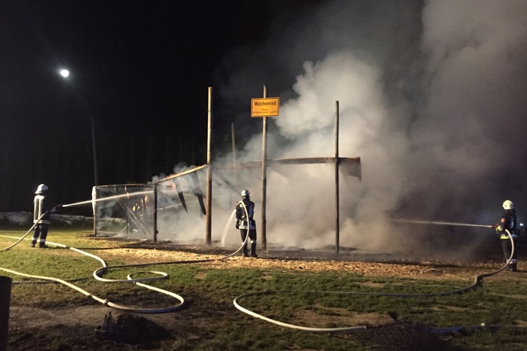Die Feuerwehren aus Weichenried, Reichertshofen, Pörnbach und Hohenwart wurden gegen 3 Uhr alarmiert. Als die Einsatzkräfte anrückten, stand der Bauwagen bereits in Vollbrand. Die Floriansjünger löschten zwar die Flammen rasch ab; das Objekt mit einer Grundfläche von etwa zehn auf 15 Meter konnte allerdings nicht mehr gerettet werden und wurde komplett zerstört. Der Sachschaden wird von der Polizei auf gut 2000 Euro beziffert.