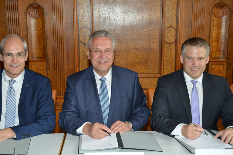 (ty) Der Bahnhalt „Ingolstadt Audi“ kommt. Heute haben Oberbürgermeister Christian Lösel, Bayerns Innen- und Verkehrsminister Joachim Herrmann, Audi-Produktions- und Logistikvorstand Hubert Waltl sowie André Zeug, Vorstandsvorsitzender der DB Station&Service AG, die entsprechenden Finanzierungsverträge im Historischen Sitzungssaal des Alten Rathauses unterzeichnet.