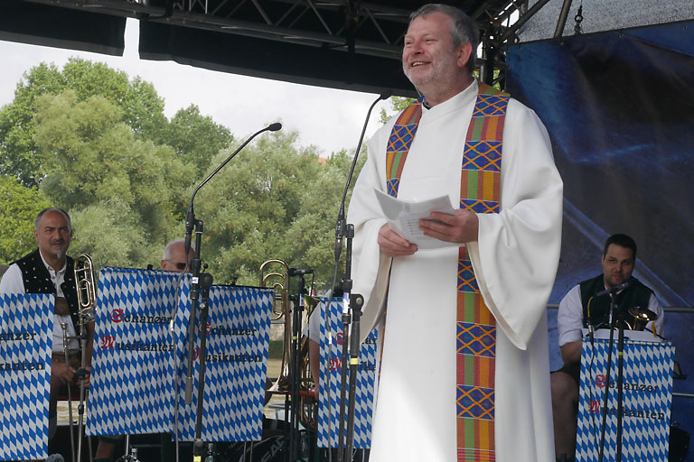 (ty) Mit einem ökumenischen Gottesdienst begann heute Vormittag die Saisoneröffnungsfeier am Donaustrand in Ingolstadt. Die Zahl der Besucher indes hielt sich in Grenzen. „Ich komme mir vor in Rio de Janeiro“, witzelte Pfarrer Erich Schredl angesichts der gerade einmal 30 Besucher.