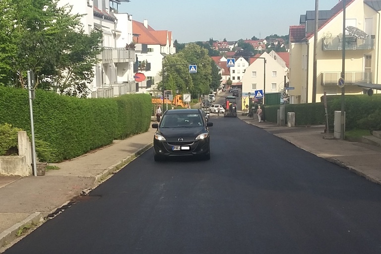 „Der Asphalt muss mindestens 140 Grad heiß aufgebracht werden“, erklärt Team- und Projektleiter Johannes Bucher, der bei den Stadtwerken zuständig für den Straßenunterhalt ist. „Danach braucht die Masse bei sommerlichen Temperaturen mehrere Stunden, um komplett auszukühlen und darf 24 Stunden lang überhaupt nicht befahren werden.“ Laut ADAC werden Reifen schon bei einer Asphalt-Temperatur von 40 bis 60 Grad beschädigt, sie können theoretisch sogar Feuer fangen.